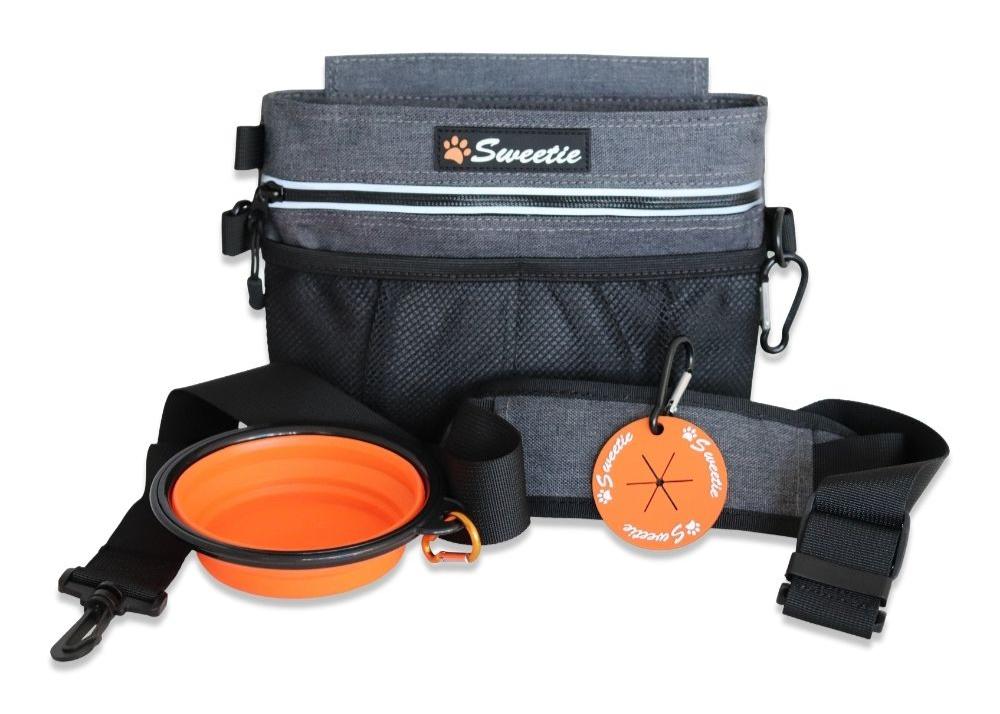 Everything you need for stress-free strolls in one handy bag. Treats, poo bags, and even a bowl and a clicker– sorted.