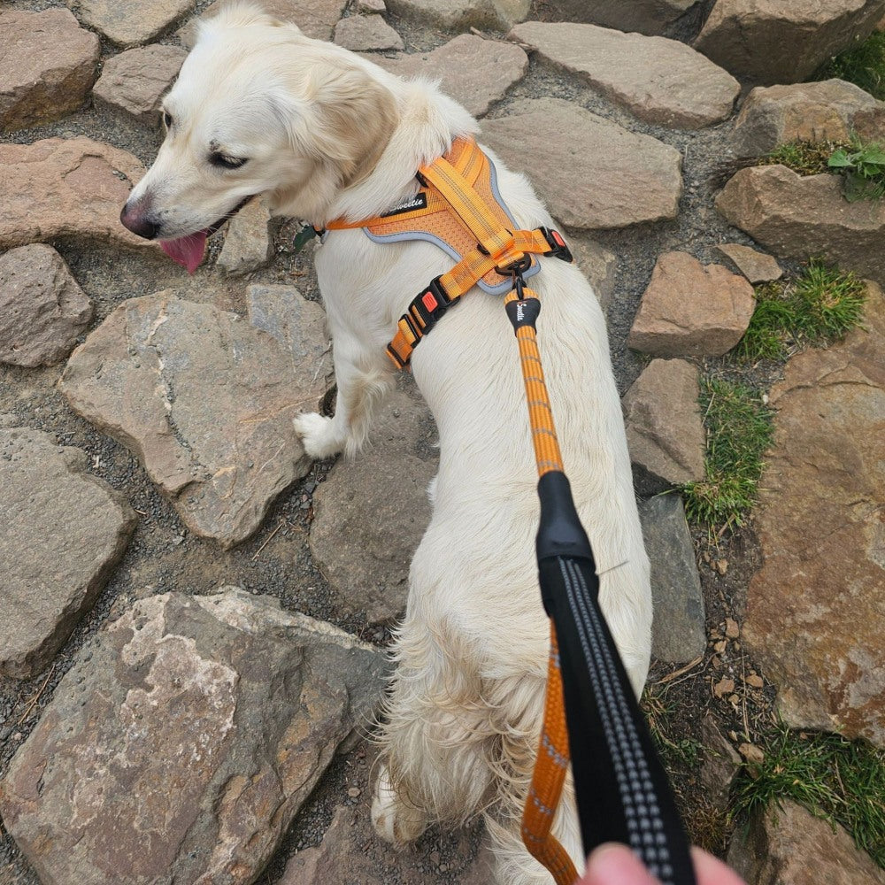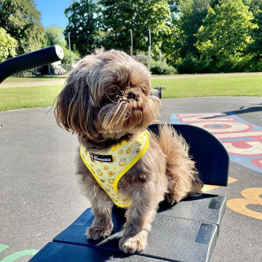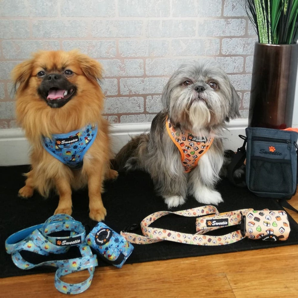 Featuring padded chests, adjustable straps, secure buckles, and reflective elements, Sweetie’s harnesses ensure a snug fit and safety for your dog on every walk.